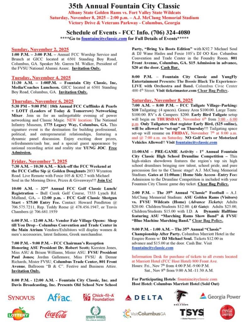 FOUNTAIN CITY CLASSIC EVENTS! October 30, 2025 Feature Slider CLICK HERE TO PURCHASE GAME DAY TICKETS